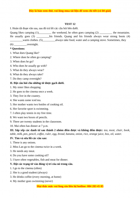 Đây là bản xem thử, vui lòng mua tài liệu để xem chi tiết (có lời giải)