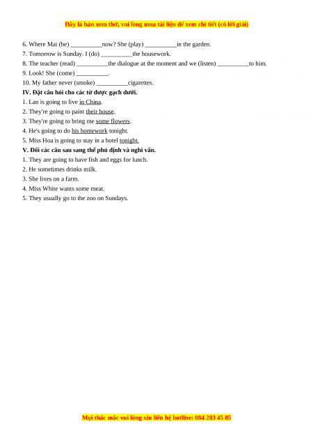 III. Chia động từ trong ngoặc theo dạng đúng.