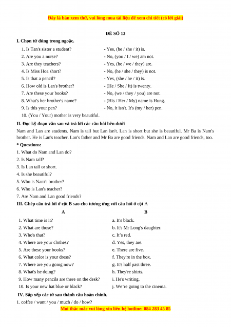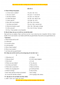 Học kỳ 2: Phần 2 Một số đề kiểm tra học kỳ 2 - Mục A- Đề số 13-Giáo viên Mai Lan Hương đầy đủ đáp án