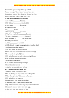 VI. Hãy đặt các trạng từ trong ngoặc đơn vào đúng vị trí.