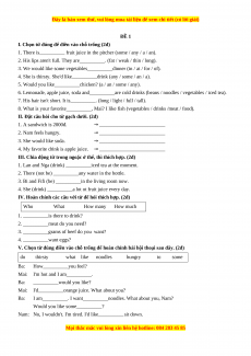 II. Đặt câu hỏi cho từ gạch dưới. (2đ) 1. A sandwich is 2000đ. → __________________________ 2. Nam feels hungry. → __________________________ 3. She would like soda. → __________________________