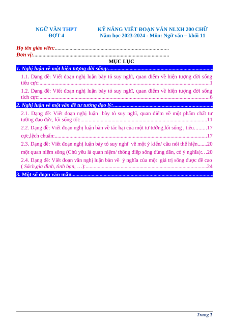3. Một số đoạn văn mẫu.............................................................................................................26 Trang 1