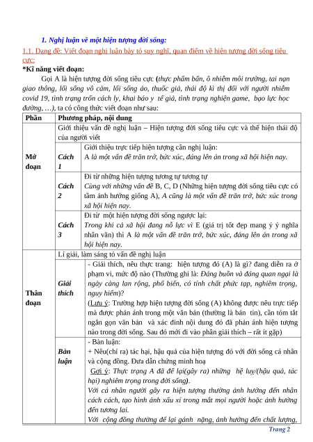2.2. Dạng đề: Viết đoạn nghị luận bàn về tác hại của một tư tưởng,lối sống , tiêu.........17