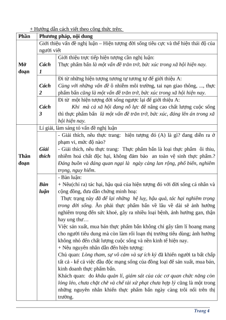đường, …), ta có công thức viết đoạn như sau: Phần Phương pháp, nội dung