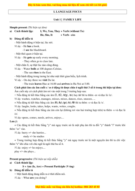 I. LANGUAGE FOCUS Unit 1 | FAMILY LIFE