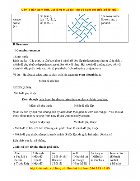 dệt (vải..), She wove some weave đan (rổ, rá...), flowers into a /wiːv/ kết (hoa...) garland. (v) B.Grammar: I.Complex sentences 1.Định nghĩa