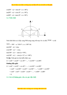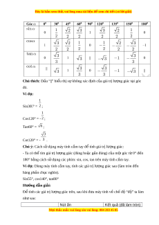 Chú thích: Dấu “||” bi u ể th s ị ự không xác đ nh c ị a gi ủ á tr l ị ư ng gi ợ ác t i ạ góc đó. Ví d : ụ 1 Sin30ׄ° = 2 ; 1 Cos120° = - 2 ; Tan60° = 6 ; 3 Cot120° = - 3 .