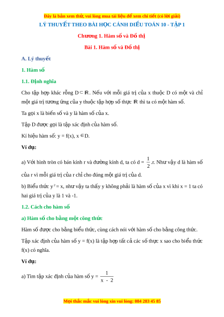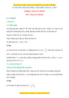 Đây là bản xem th , vu ử i lòng mua tài li u ệ đ xe ể m chi ti t ế (có l i ờ gi i ả ) LÝ THUY T Ế THEO BÀI H C Ọ CÁNH DI U Ề TOÁN 10 - T P Ậ 1 Chư ng 1. H ơ àm số và Đ t ồ h ị