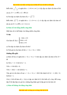 a) Hàm số f(x) có nghĩa khi x < 0; x > 0; x = 0 nên t p ậ xác đ nh ị c a ủ hàm s ố là: D = b) V i