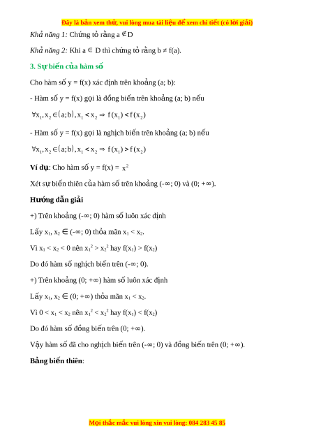 Do đó hàm s ngh ch bi n trên (-ố ị ế ∞; 0).