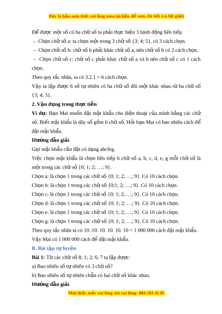 Đây là bản xem th , vu ử i lòng mua tài li u ệ đ xe ể m chi ti t ế (có l i ờ gi i ả ) Ví d : ụ M t ộ ngư i ờ ăn tr a ư t i ạ m t ộ c a ủ hàng. Trong th c ự đ n ơ có 5 món th tị, 3