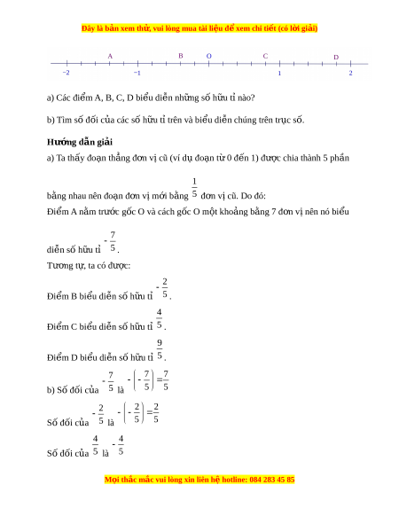 Đây là bản xem th , vu ử i lòng mua tài li u ệ đ xe ể m chi ti t (c ế ó l i ờ gi i ả ) • Trên tr c ụ s , ố hai đi m ể bi u ể di n ễ c a ủ hai số h u ữ tỉ đ i ố nhau n m ằ về hai phía khác nhau so v i ớ đi m ể O và có cùng kho ng ả cách đ n O ế .
