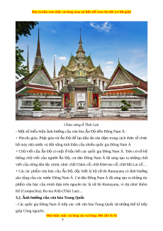 Đây là bản xem th , vu ử i lòng mua tài li u ệ đ xe ể m chi ti t ế (có l i ờ gi i ả ) Chùa vàng Thái ở Lan - M t ộ số bi u hi ể n ệ nh h ả ư ng c ở a ủ văn hóa n Đ Ấ ộ đ n Đ ế ông Nam Á: + Hin-đu giáo, Ph t ậ giáo t ừ n Ấ Đ ộ đ ể l i ạ d u ấ n ấ sâu đ m ậ trong cách th c ứ t ổ ch c ứ bố máy nhà nư c ớ và đ i ờ s ng t ố inh th n c ầ a nhi ủ u qu ề c gi ố a Đông Nam Á + Chữ vi t ế c a ủ n Ấ Đ ộ có m t ặ ở h u ầ h t ế các qu c
