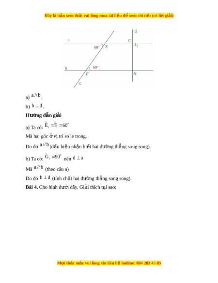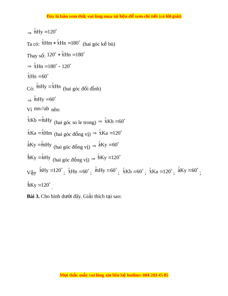 (hai góc đồng vị) aKy 6 0 bKy n Hy (hai góc đồng v ) ị bKy 1 20 V y ậ nHy 1 20 ; xHn 6 0 ; mHy 6 0 ; xKb 6 0 ; xKa 1 20 ; aKy 6 0 ; bKy 120 . Bài 3. Cho hình dư i ớ đây. Gi i ả thích t i ạ sao: M i