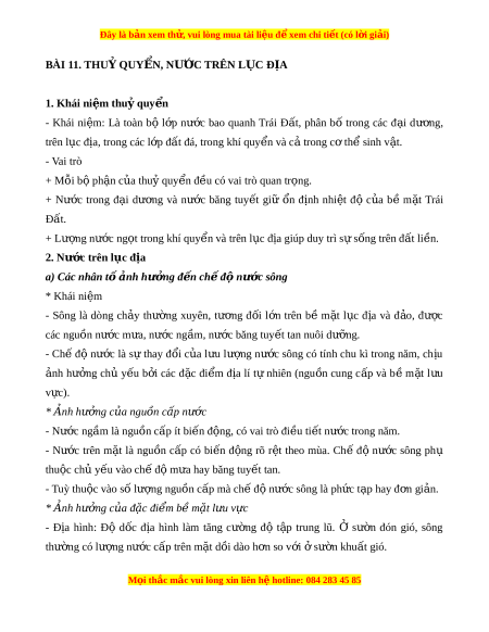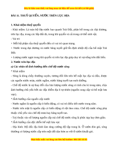 Đây là bản xem th , vu ử i lòng mua tài li u ệ đ xe ể m chi ti t ế (có l i ờ gi i ả ) BÀI 11. THU Q Ỷ UY N Ể , NƯ C Ớ TRÊN L C Ụ Đ A Ị 1. Khái ni m ệ thu quy ỷ n ể - Khái ni m ệ : Là toàn bộ l p ớ nư c ớ bao quanh Trái Đ t