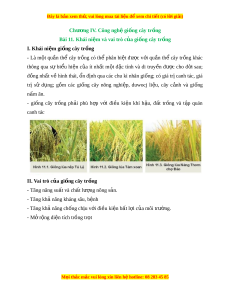 Đây là bản xem th , vu ử i lòng mua tài li u ệ đ xe ể m chi ti t (c ế ó l i ờ gi i ả ) Chư ng I ơ V. Công ngh gi ệ ng ố cây tr ng ồ Bài 11. Khái ni m ệ và vai trò c a gi ủ ng cây t ố r ng ồ I. Khái ni m ệ gi ng cây t ố r ng ồ - Là m t ộ qu n ầ thể cây tr ng ồ có th ể phân bi t ệ đư c ợ v i ớ qu n ầ th ể cây tr ng ồ khác thông qua sự bi u ể hi n ệ c a ủ ít nh t ấ m t ộ đ c ặ tính và di truy n ề đư c ợ cho đ i ờ sau; đồng nhất v hì ề nh thái, n đ ổ nh ị qua các chu kì nhân gi ng; ố có giá tr canh ị tác, giá trị sử d ng; ụ g m ồ các gi ng ố cây nông nghi p, ệ duwocj li u, ệ cây c nh ả và gi ng ố nấm ăn. - giống cây tr ng ồ ph i ả phù h p ợ v i ớ đi u ề ki n ệ khí h u, ậ đ t ấ tr ng ồ và t p ậ quán canh tác II. Vai trò c a gi ủ ng cây t ố r ng ồ