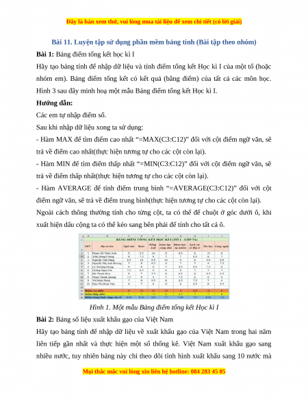 Bài 11. Luyện tập sử dụng phần mềm bảng tính (Bài tập theo nhóm)
