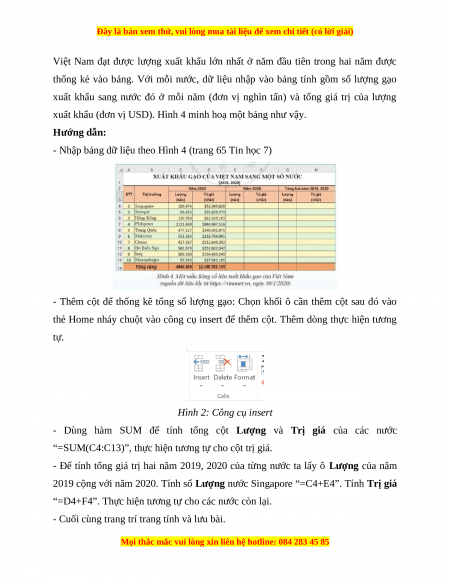 xuất khẩu (đơn vị USD). Hình 4 minh hoạ một bảng như vậy. Hướng dẫn: