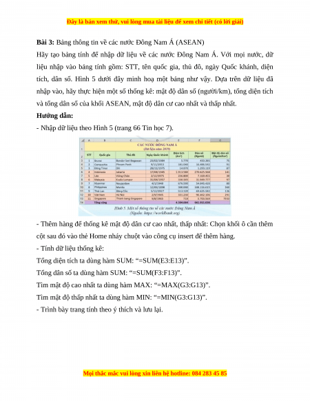 Bài 3: Bảng thông tin về các nước Đông Nam Á (ASEAN)