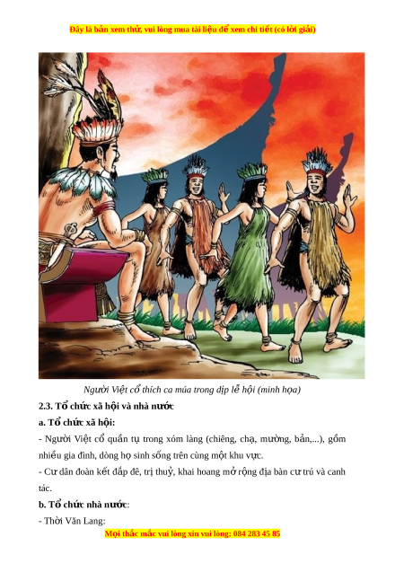 a đình, dòng họ sinh sống trên cùng m t ộ khu v c. ự - Cư dân đoàn k t ế đ p ắ đê, tr ịthu , ỷ khai hoang m ở r ng ộ đ a ị bàn c ư trú và canh tác. b. T ch ổ ức nhà nư c ớ : - Th i ờ Văn Lang: M i ọ thắc m c