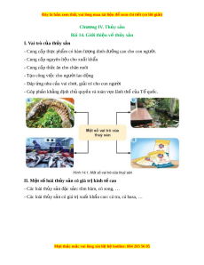 Đây là bản xem th , vu ử i lòng mua tài li u ệ đ xe ể m chi ti t (c ế ó l i ờ gi i ả ) Chư ng ơ IV. Th y s ủ ản Bài 14. Gi i ớ thi u v ệ t ề h y s ủ n ả I. Vai trò c a t ủ h y s ủ ản - Cung cấp th c ph ự m ẩ có hàm lư ng ợ dinh dư ng cao cho ỡ con ngư i ờ .