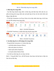 - Tạo hiệu ứng chuyển trang chiếu và hiệu ứng xuất hiện hoặc biến mất cho các