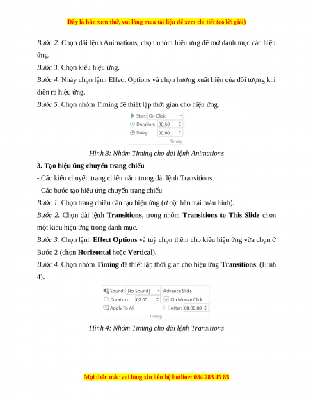 Bước 4. Chọn nhóm Timing để thiết lập thời gian cho hiệu ứng Transitions. (Hình 4).