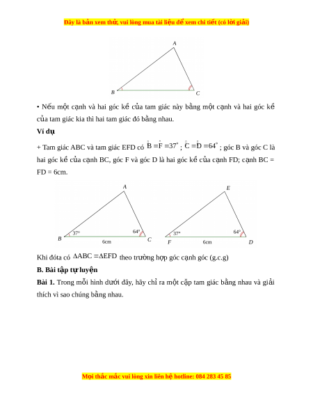 Đây là bản xem th , vu ử i lòng mua tài li u ệ đ xe ể m chi ti t (c ế ó l i ờ gi i ả ) • N u ế m t ộ c nh ạ và hai góc kề c a ủ tam giác này b ng ằ m t ộ c nh ạ và hai góc kề c a