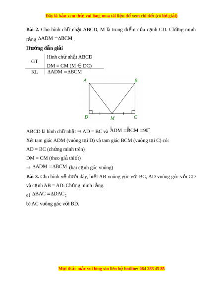 ạ D) và tam giác BCM (vuông t i ạ C) có: AD = BC (ch ng m ứ inh trên) DM = CM (theo gi t ả hi t ế ) ⇒ A DM B CM (hai c nh góc vuông) ạ