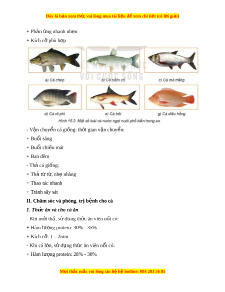 Đây là bản xem th , vu ử i lòng mua tài li u ệ đ xe ể m chi ti t (c ế ó l i ờ gi i ả ) Bài 15. Nuôi ao cá I. Chu n b ẩ ao nuôi ị và cá gi ng ố