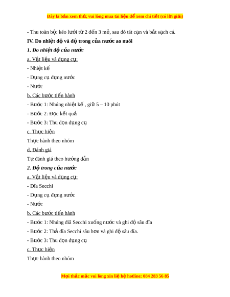 IV. Đo nhi t đ và đ trong c a n c ao nuôiệ ộ ộ ủ ướ