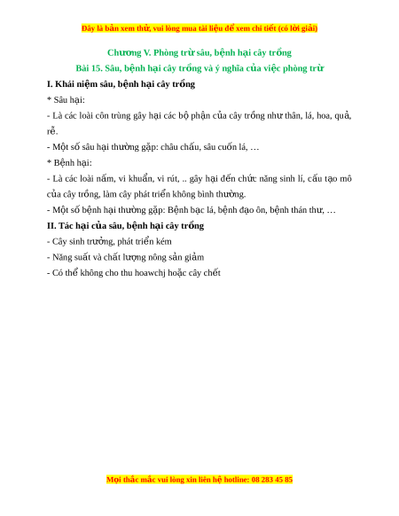Đây là bản xem th , vu ử i lòng mua tài li u ệ đ xe ể m chi ti t (c ế ó l i ờ gi i ả ) Chư ng ơ V. Phòng tr s ừ âu, b nh h ệ i ạ cây tr ng ồ Bài 15. Sâu, b nh h ệ i ạ cây tr ng