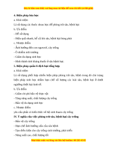 Đây là bản xem th , vu ử i lòng mua tài li u ệ đ xe ể m chi ti t (c ế ó l i ờ gi i ả ) III. M t ộ số bi n p ệ háp phòng tr s ừ âu, b nh h ệ i ạ cây tr ng ồ 1. Bi n ệ pháp canh tác a. Khái ni m ệ - Là áp d ng ụ các kĩ thu t ậ tr ng ồ tr t ọ nh ư v ệ sinh đ ng ồ ru ng, ộ làm đ t ấ , bón phân, tư i ớ nư c,