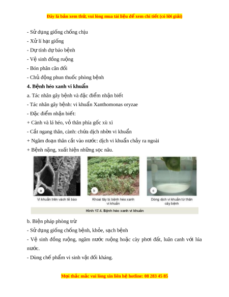 Đây là bản xem th , vu ử i lòng mua tài li u ệ đ xe ể m chi ti t (c ế ó l i ờ gi i ả ) - S d ử ng gi ụ ống chống chịu - X l ử í h t ạ gi ng ố - D t ự ính d báo b ự nh ệ - Vệ sinh đồng ru ng ộ - Bón phân cân đối - Ch đ ủ ng ộ phun thu c phòng b ố nh ệ 4. B nh héo xanh vi ệ khu n ẩ