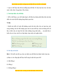 Đây là bản xem th , vu ử i lòng mua tài li u ệ đ xe ể m chi ti t (c ế ó l i ờ gi i ả ) + Lo i ạ có thể s p ắ x p ế thứ tự (ch ng ẳ h n ạ dữ li u ệ v ề x p ế lo i ạ h c ọ l c ự c a ủ h c ọ sinh: Gi i ỏ , Khá, Trung bình, Y u, ế Kém). 2. Tính đ i ạ di n c ệ a d ủ l ữ i u ệ • Để có th ể đ a ư ra các k t ế lu n ậ h p ợ lí, d ữ li u ệ thu đư c ợ ph i ả đ m ả b o ả tính đ i ạ