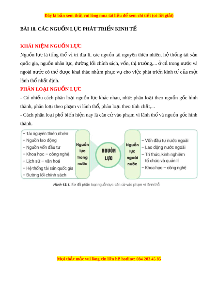 Đây là bản xem th , vu ử i lòng mua tài li u ệ đ xe ể m chi ti t ế (có l i ờ gi i ả ) BÀI 18. CÁC NGU N Ồ L C Ự PHÁT TRI N Ể KINH TẾ KHÁI NI M N Ệ GU N Ồ L C Ự Nguồn l c ự là t ng ổ thể vị trí đ a ị lí, các ngu n