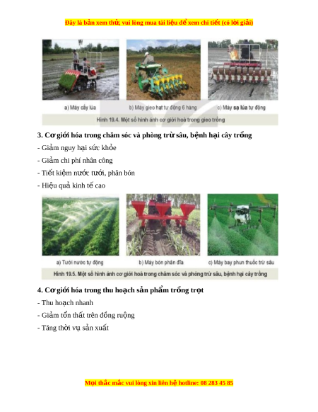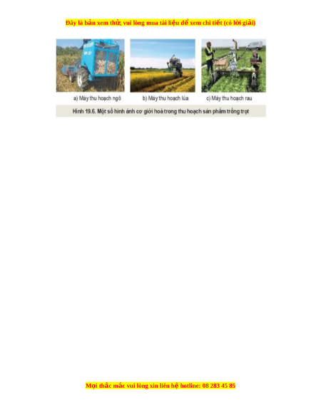 Đây là bản xem th , vu ử i lòng mua tài li u ệ đ xe ể m chi ti t (c ế ó l i ờ gi i ả ) - Là sử d ng ụ các d ng ụ c , ụ máy móc phù h p ợ v i ớ t ng ừ lo i ạ cây tr ng ồ để thu ho ch ạ s n ả ph m ẩ đ t ạ hi u qu ệ t ả t ố nh t ấ . - yêu cầu: đúng th i ờ đi m ể , đúng phư ng pháp, ơ nhanh g n, c ọ n t ẩ h n ậ II. M t ộ s ố ng d ứ ng c ụ ơ gi i ớ hóa trong tr ng t ồ r t ọ 1. Cơ gi i
