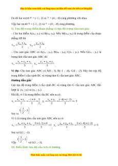 – Cho tam giác ABC có A(xA ; yA), B(xB ; yB), C(xC ; yC). N u ế G(xG ; yG) là tr ng t ọ âm c a ủ tam giác ABC thì x x x y y y A B C x A B C y G 3 G ; 3 . Ví d :
