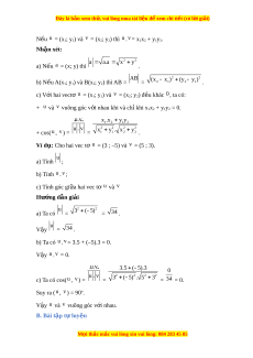 ớ nhau khi và chỉ khi x1x2 + y1y2 = 0. u.v x .x y y 1 2 1 2 u . v 2 2 2 2 + cos( u , v ) = = x y . x y 1 1 2 2 . Ví d : ụ Cho hai vec t
