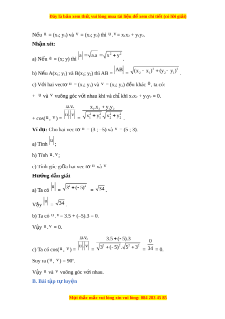 = 3 ( 5) . 5 3 = 34 = 0. Suy ra ( u , v ) = 90o. V y ậ u và v vuông góc v i ớ nhau. B. Bài tập t l ự uy n ệ M i