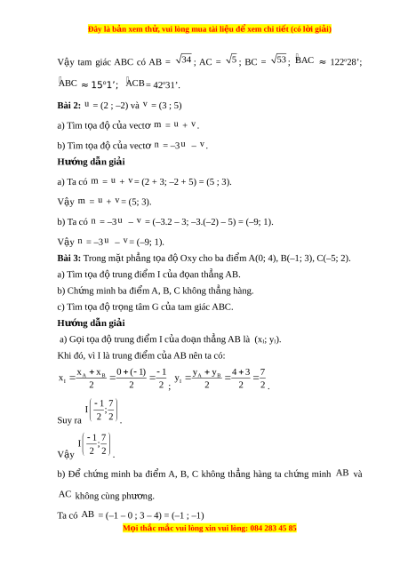 Đây là bản xem th , vu ử i lòng mua tài li u ệ đ xe ể m chi ti t (c ế ó l i ờ gi i ả ) Bài 1: Trong m t ặ ph ng ẳ t a