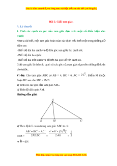 Bài 2. Giải tam giác. A. Lý thuy t ế 1. Tính các c nh ạ và góc c a ủ tam giác d a ự trên m t ộ số đi u ề ki n ệ cho trư c ớ Như ta đã bi t ế , m t