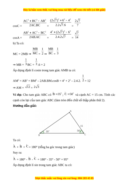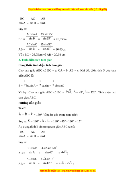 Đây là bản xem th , vu ử i lòng mua tài li u ệ đ xe ể m chi ti t ế (có l i ờ gi i ả ) BC AC AB sin A = sin B = sinC Suy ra: AC.sin A 15.sin 95