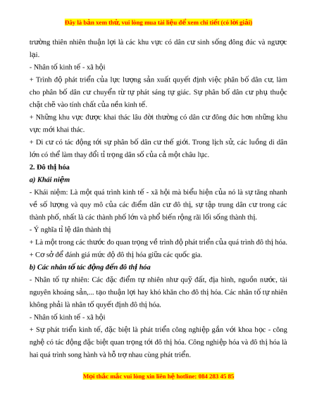 Đây là bản xem th , vu ử i lòng mua tài li u ệ đ xe ể m chi ti t ế (có l i ờ gi i ả ) trư ng ờ thiên nhiên thu n ậ l i ợ là các khu v c ự có dân cư sinh s ng ố đông đúc và ngư c ợ l i ạ . - Nhân tố kinh t - ế xã h i ộ + Trình độ phát tri n ể c a ủ l c ự lư ng ợ s n ả xu t ấ quy t ế đ nh ị vi c ệ phân bố dân c , ư làm cho phân bố dân cư chuy n