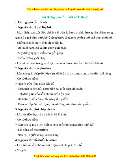 Đây là bản xem th , vu ử i lòng mua tài li u ệ đ xe ể m chi ti t (c ế ó l i ờ gi i ả ) Bài 20. Nguyên t c t ắ hi t ế k kĩ ế thu t ậ I. Các nguyên t c t ắ i ố u ư 1. Nguyên t c l ắ p đi ặ l p l ặ i ạ - M c ụ đích: xem xét đi u ch ề nh, c ỉ i ả ti n, ki ế m ể soát ch t ấ lư ng s ợ n ph ả m ẩ trung gian c a ủ quá trình thi t ế kế t ở ng b ừ ư c cũng ớ nh ư t ở ng t ổ h quá t ể rình thi t ế k . ế - Nh ng gi ữ ai đo n ạ có tính l p đi ặ l p l ặ i ạ : + Đ xu ề ất đánh giá và l a ch ự n gi ọ i ả pháp. + Xây d ng ự nguyên m u cho ẫ gi i ả pháp + Ki m ể ch ng ứ gi i ả pháp