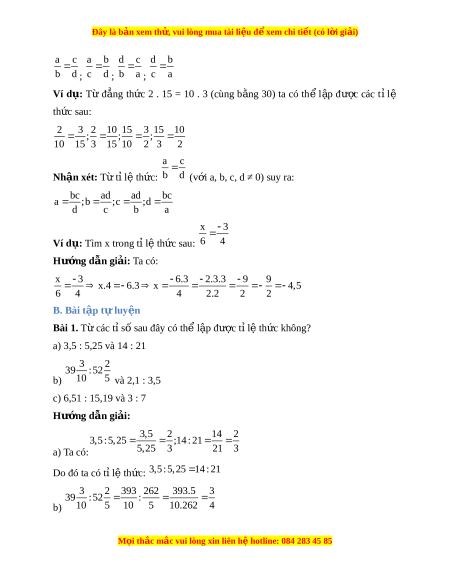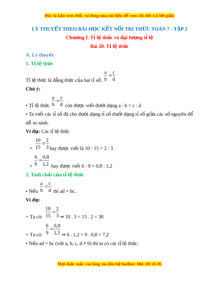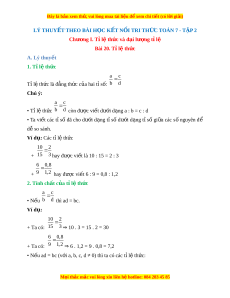 Đây là bản xem th , vu ử i lòng mua tài li u ệ đ xe ể m chi ti t (c ế ó l i ờ gi i ả ) LÝ THUY T Ế THEO BÀI H C Ọ K T Ế N I Ố TRI TH C Ứ TOÁN 7 - T P Ậ 2 Chư ng I ơ . Tỉ l t