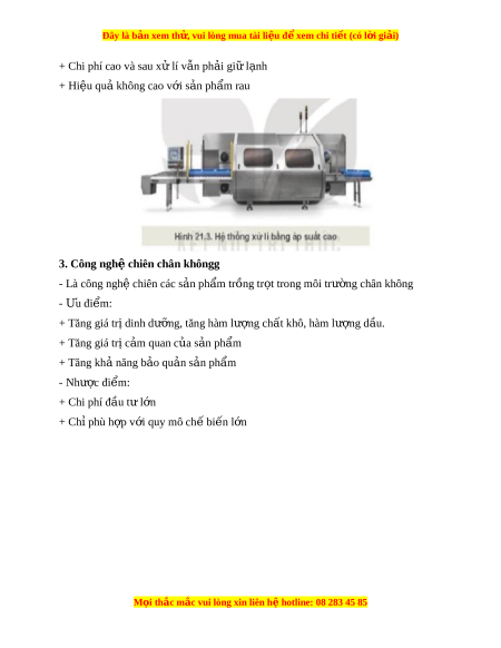 Đây là bản xem th , vu ử i lòng mua tài li u ệ đ xe ể m chi ti t (c ế ó l i ờ gi i ả ) + Chi phí cao và sau x l ử í v n ph ẫ i ả gi l ữ nh ạ + Hi u qu ệ ả không cao v i ớ s n ph ả m ẩ rau 3. Công ngh chi ệ ên chân khôngg - Là công ngh chi ệ ên các s n ph ả m ẩ tr ng t ồ r t