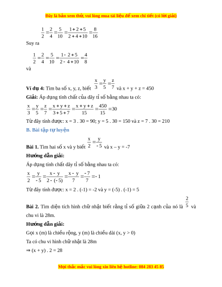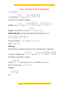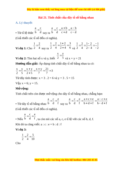 Đây là bản xem th , vu ử i lòng mua tài li u ệ đ xe ể m chi ti t (c ế ó l i ờ gi i ả ) Bài 21. Tính ch t ấ c a dãy t ủ s ỉ b ố ng nhau ằ A. Lý thuy t ế a c a c a b a b • T t ừ ỉ lệ th c ứ b d suy ra b d c d c d (Gi t ả hi t ế các t s ỉ ố đ u có nghĩ ề a). 1 2 1 2 1 2 3 1 2 1 2 1 Ví d 1