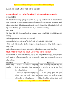 Ứ LÃNH THỔ CÔNG NGHI P Ệ Các hình th c ứ tổ ch c ứ lãnh thổ công nghi p ệ trên thế gi i ớ khá đa d ng, ạ trong đó phổ bi n ế nhất là: đi m ể công nghi p, ệ khu công nghi p, ệ trung tâm công nghi p ệ và vùng công nghiệp. Hình th c ứ Vai trò Đặc đi m ể Đi m ể công - Góp ph n ầ khai thác, sử d ng ụ h p ợ - Lãnh th ổ không l n, ớ g m ồ m t ộ vài nghiệp