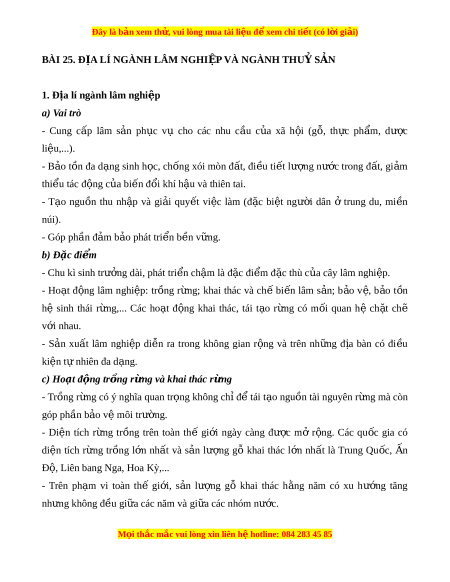 Đây là bản xem th , vu ử i lòng mua tài li u ệ đ xe ể m chi ti t ế (có l i ờ gi i ả ) 2. Đ a ị lí ngành thu s ỷ n ả a) Vai trò